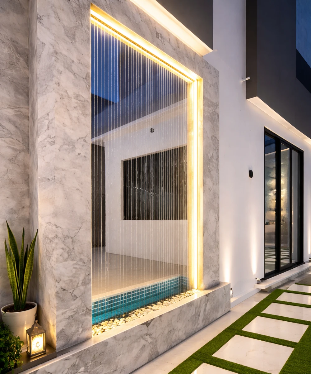 - اجرای آبشار بارانی استخر با جریان آب یکنواخت و جلوه بصری مدرن